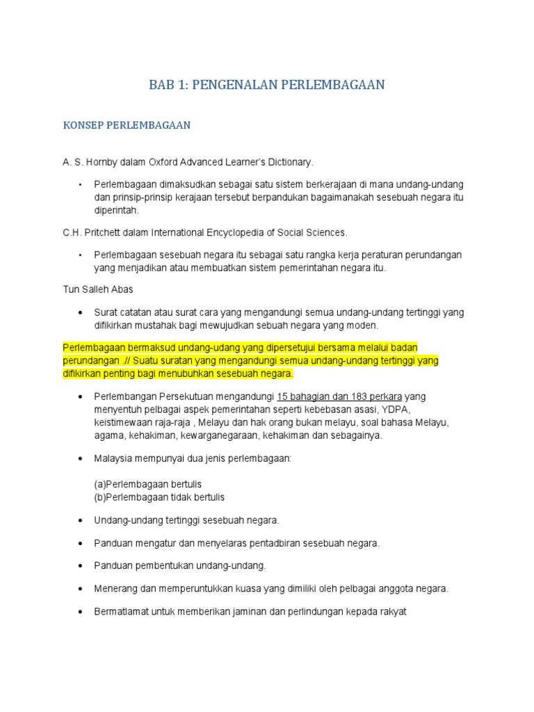 Nota Penuh Perkembangan Perlembagaan Pdf