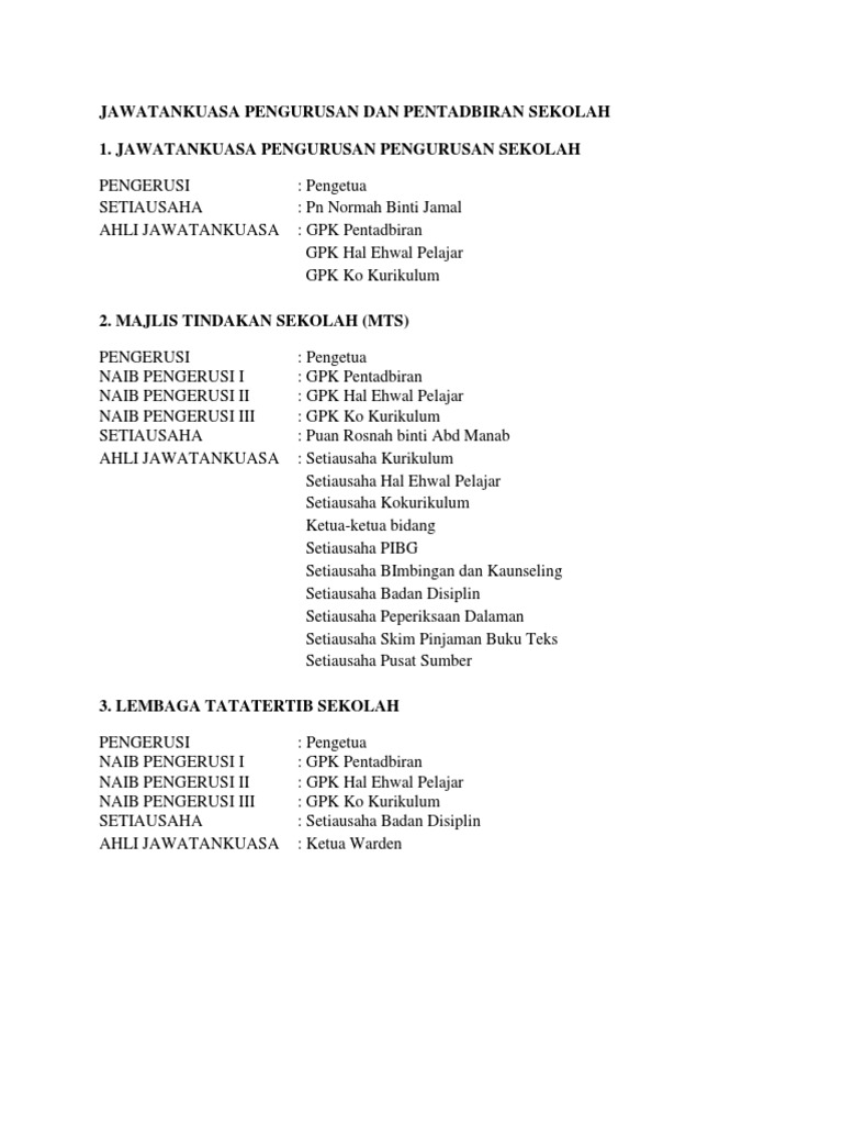 Jawatankuasa Pengurusan Dan Pentadbiran Sekolah Pdf