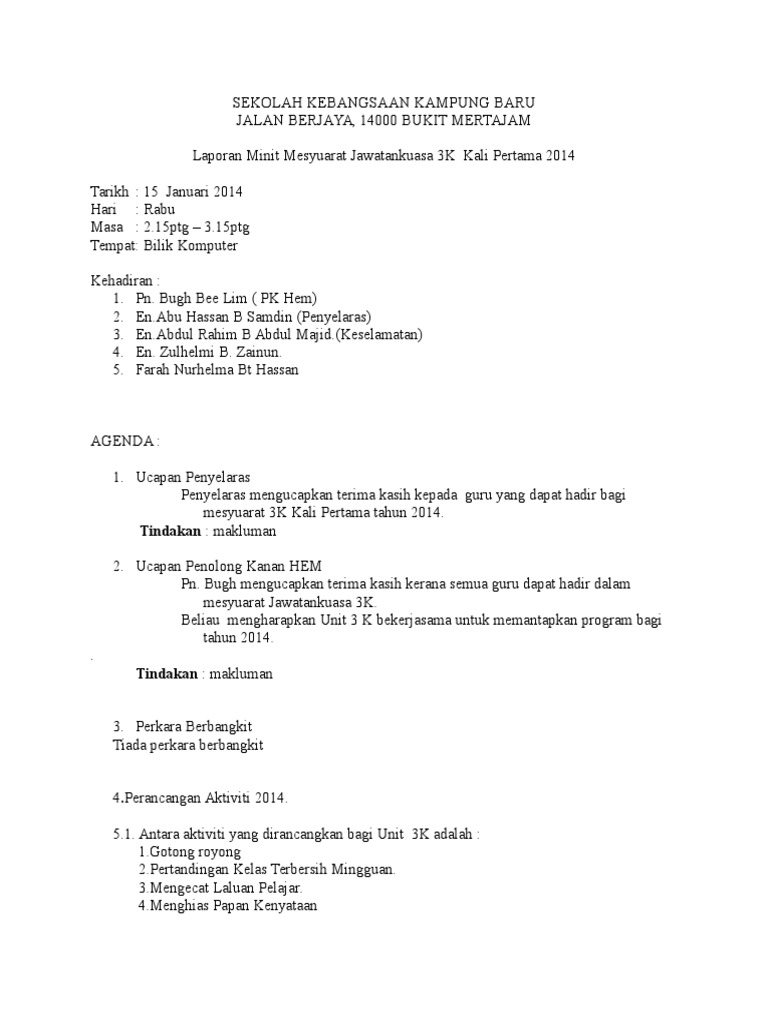 Berikut disertakan cara buat dan contoh minit mesyuarat yang berkualiti lengkap dan mudah beserta maklumat format dan contoh. Teks ucapan pengerusi majlis mesyuarat agong pibg 2015. Saf Kepimpinan Penolong Kanan Pn.