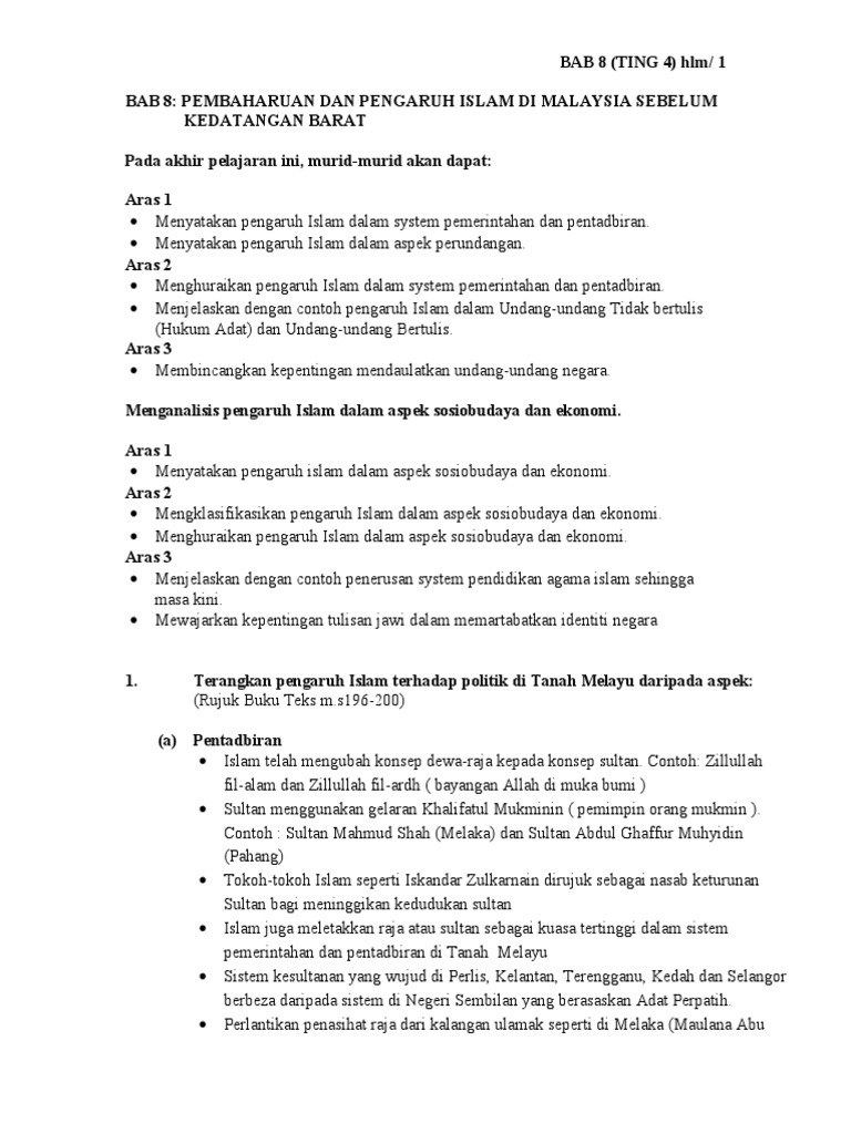 Bab 8 Pembaharuan Dan Pengaruh Islam Di Malaysia Sebelum Kedatangan Barat Pdf